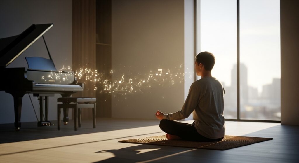 So, when you meditate with gentle piano or ambient tones in the background, you’re giving your nervous system a helping hand. For beginners especially, it can make meditation less intimidating and more inviting. Silence can feel intense; music softens the entry.